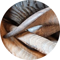 Utilisé pour les membranophones depuis la nuit des temps, la peau parcheminée permet d’obtenir des teintes chaudes aussi bien dans le son que dans la couleur. Support idéal pour le plus vieux compagnon de la flûte, le tambour, le parchemin est un livre ouvert dans lequel on lit véritablement l’existence de l’animal! Il en est de même pour tous les matériaux naturels dont les imperfections en font leur richesse.